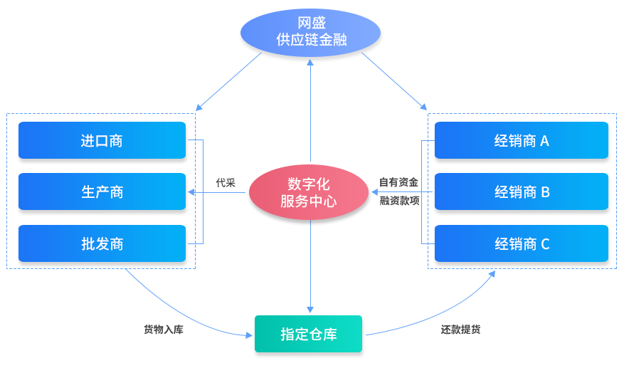 對(duì)供應(yīng)鏈單個(gè)企業(yè)或上下游多個(gè)企業(yè)提供全面交易、金融等服務(wù)。 網(wǎng)盛供應(yīng)鏈金融是依托網(wǎng)盛數(shù)字化交易平臺(tái)及供應(yīng)鏈金融平臺(tái),為